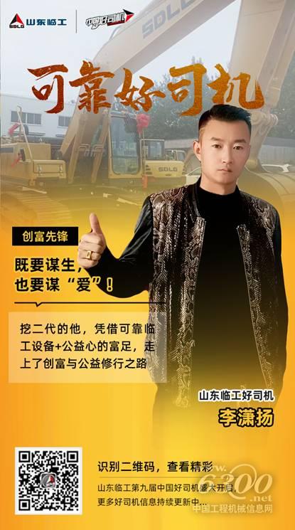由于深受家族挖机产业的熏陶,李潇扬从小对“大机械”有着天然地热爱。敢想敢拼、喜欢挑战的他,毅然投入挖机行业,发展至今已拥有5台不同吨级的临工挖机,走上了创富事业与公益之路。“奋进有为、善良为本”是他的行业标签,“既要谋生,也要谋爱”是他的人生信条。