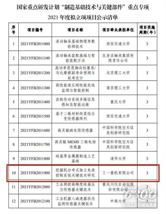 2021国家重点研发计划重点专项,三一重机榜上有名!