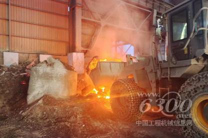 “风火轮哐啷作响,一路火花带闪电”,是对徐永波和他的操作手们日常工作场景的生动描述。上千度的钢渣从高炉中倾倒出来,必须抓紧清理、转运到其他场地,以免影响下一炉钢。这时候,钢渣还是又红又亮的半融化状态,车间里就像火焰山一样到处冒火、热浪滚滚。这对施工设备的品质以及操作手的技术要求极高。