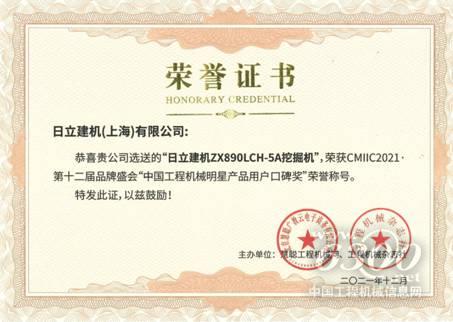 2021年12月10日,第十二届“CMIIC2021中国工程机械产业互联网大会暨品牌盛会”(以下简称:CMIIC2021)在长沙盛大举办。备受行业瞩目的“明星产品”年度榜单上,日立建机ZX890LCH-5A大型履带式液压挖掘机荣获“用户口碑奖”,再次显示出建机产品卓越的品牌感染力和市场表现力。