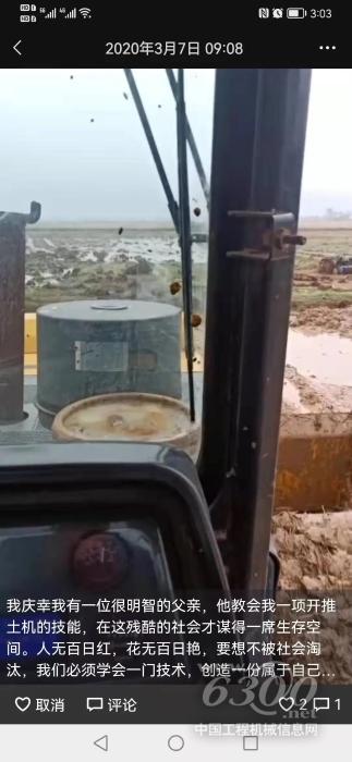 近年来,在儿子的强烈要求下,谭大哥终于“退休”回了家。每每提到父亲,谭大哥的儿子总是怀着感恩之心,感恩父亲教会了他做人的道理和开推土机的本领,立足社会谋得一席生存之地……就这样,父子二人把工程越做越大,自家推土机保有量也逐年增多,日子也越来越红火。