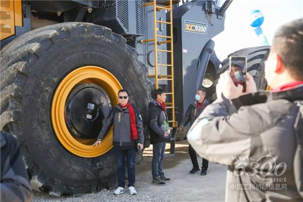 现场,“神州第一铲”35吨级超大吨位电传动轮式装载机XC9350盛大登场,整机有3层楼高、轮胎直径达3米,工作载荷接近40吨,在国内已无敌手。