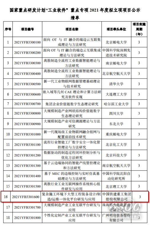 2.  铁建重工牵头国家重点研发计划“工业软件”专项项目;