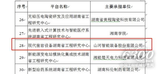 近日,湖南省发展和改革委员会官网公示了《2021年度湖南省工程研究中心和企业技术中心名单》,山河智能装备股份有限公司联合中南大学共同申报的“现代凿岩设备湖南省工程研究中心”获批建立,标志着山河智能在现代凿岩设备领域的积淀再次获得肯定。