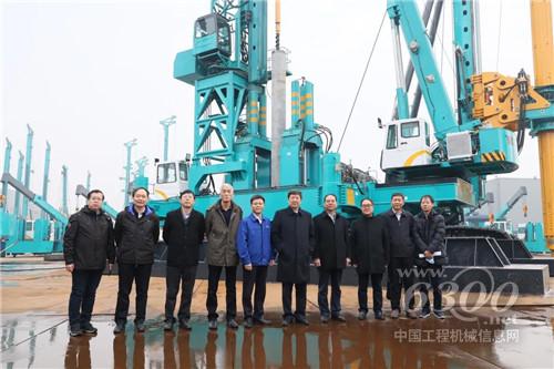 专家组一行在现场实地考察了四项科技成果的样机实物,由山河智能基础装备事业部总经理朱振新对样机进行了讲解,并介绍了超级旋挖、双轮铣、液压抓斗等全系列产品。