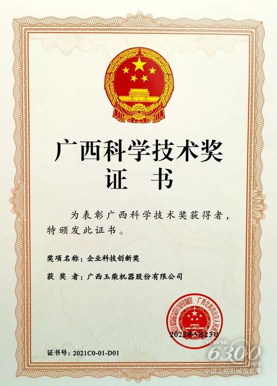 广西科学技术奖是广西科技界的至高荣誉,玉柴多项技术创新成果获奖,并连年夺得一等奖桂冠,充分展示了玉柴的科技研发水平及整体创新实力。