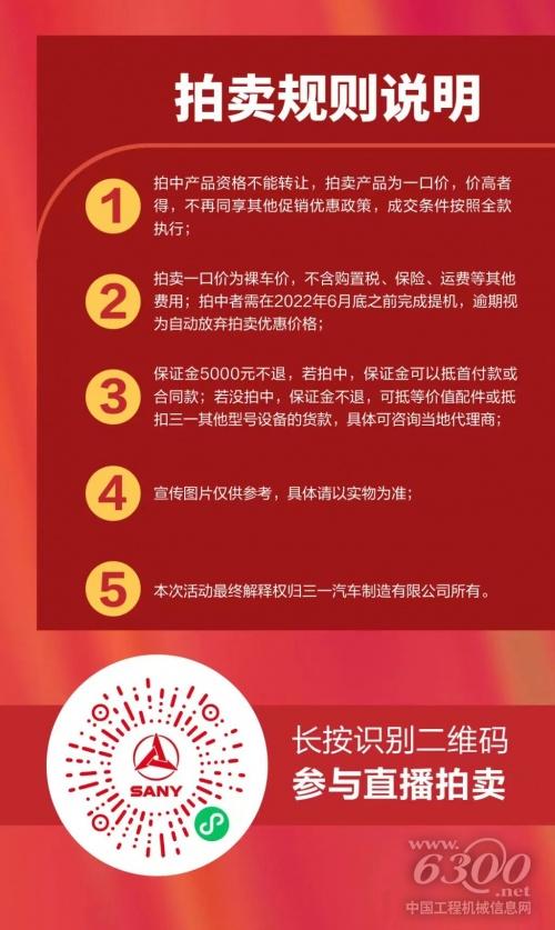 ③ 保证金5000元不退,若拍中,保证金可以抵首付款或合同款;若没拍中,保证金不退,可抵等价值配件或抵扣三一其他型号设备的货款,具体可咨询当地代理商;