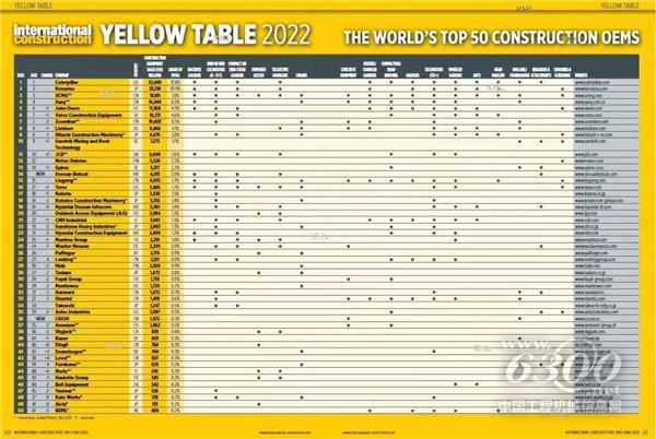 全球工程机械信息提供商英国KHL集团官微6月4日消息,KHL旗下《国际建设》杂志发布的最新Yellow Table榜单显示,2021年全球前50强工程机械主机生产企业榜单中前10名分别是: