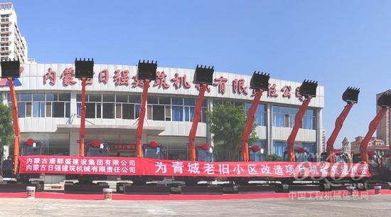 2022年6月10日,10台日立建机ZX60C-5A液压挖掘机在日立建机经销商——内蒙古日强建筑机械有限公司(以下简称:内蒙日强)列阵待发,这是内蒙日强向战略合作伙伴——内蒙古唐都盛建设集团有限公司(以下简称:唐都盛集团)交付的首批设备。双方领导共同出席了此次交机仪式,10台ZX60C-5A将即刻投身客户重点业务,成为青城老旧小区改造项目的建设主力。