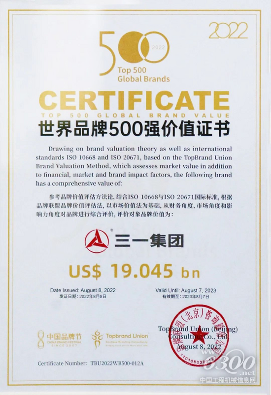 在中国品牌500强榜单中,三一已连续多年稳居中国工程机械行业第一品牌。此次成功上榜2022世界品牌500强,不仅代表着全球专家对“三一”品牌的全方位肯定,更表明了其行业领导力和全球品牌影响力的不断攀升。