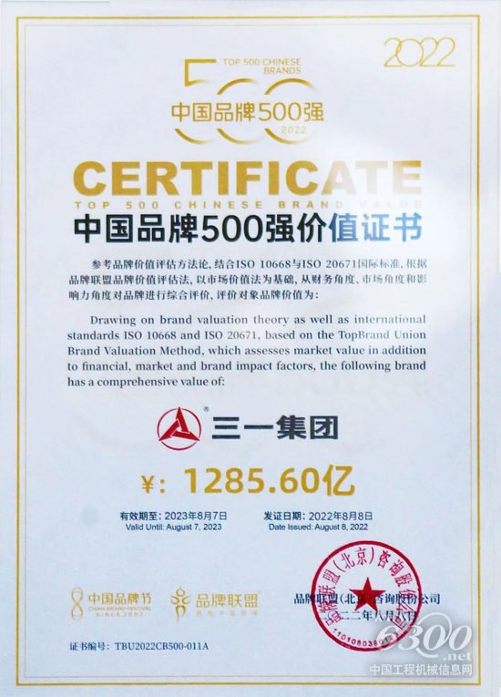 8月8日,2022中国品牌节第16届年会在长沙召开。现场,三一捧回四项大奖:以190.45亿美元的品牌价值位列2022世界品牌500强第411名,以1285.60亿元人民币的品牌价值位列2022中国品牌500强第104名,荣膺“华谱奖”,荣获“2022中国十大优秀品牌案例”,彰显“三一”品牌的强劲实力。