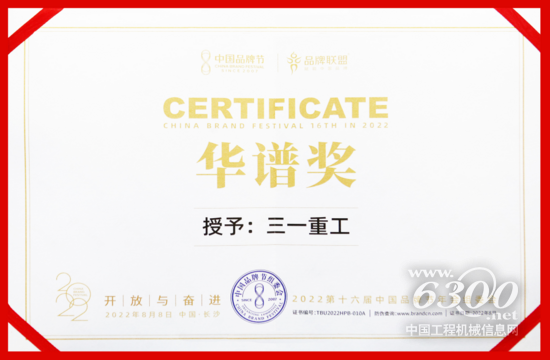 当天,中国品牌节最高奖项“华谱奖”公布,三一凭借“智造龙头,产业报国”再次上榜,荣获“迅速崛起的卓越先锋”称号。“华谱奖”每年评选出年度最能代表国家品牌形象的25大典范品牌,代表中国企业年度品牌建设的崇高荣誉,这已是三一第十一次上榜。