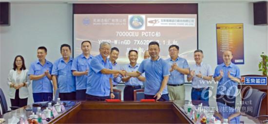 玉柴船动与芜湖造船厂有限公司在珠海举行了YCMP-WinGD 7X62DF-2.1主机批量订单签约仪式,该主机将配套于7000CEU PCTC系列船,是玉柴船动有史以来总额最高的订单。