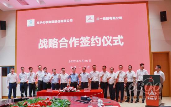 9月26日,三一集团与万华化学集团在长沙举行签订战略合作协议。三一集团执行总裁、总工程师易小刚,万华化学集团董事、常务副总裁华卫琦出席仪式并代表签约。