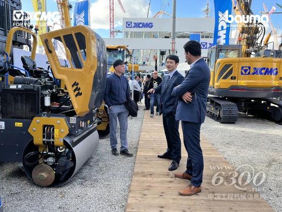 在宝马展现场,集智能、创新、绿色为一体的徐工“钢铁军团”,吸引了众多国际友人前来咨询洽谈。造型出众的XD系列轻型压路机更是引来了一批小粉丝进行现场试乘。