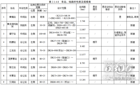 本站近期仅办理客运作业,站房设置于城镇一侧,站房中心里程为DK17+630。车站设到发线3条(含1条正线)、有效长880m,设60mx100m站房场坪1处,550mx8mx1.25m基本站台一座,站房对侧预留增设货场及专用线接轨及用地条件。