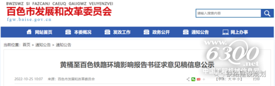10月25日,《黄桶至百色铁路环境影响报告书征求意见稿信息公示》在百色市发改委网站发布,项目建设标准、线路走向和设站方案基本确定。