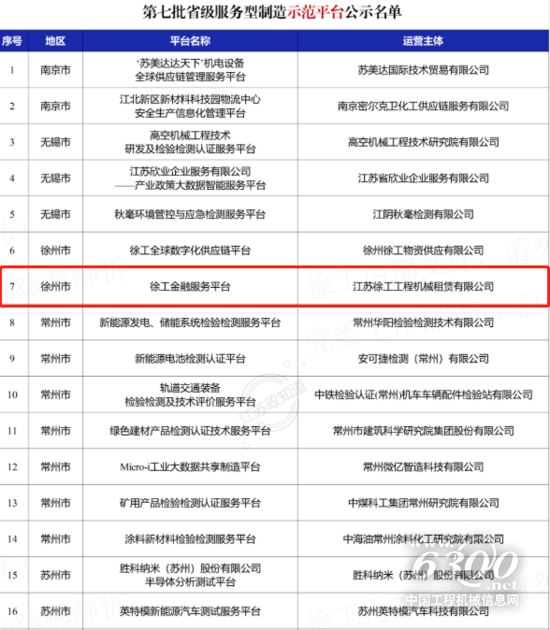 近日,江苏省工信厅公布了第七批江苏省服务型制造示范企业(平台)名单,徐工金融服务平台荣获“江苏省服务型制造示范平台”称号,也是江苏省首家上榜的融资租赁平台,这充分说明了其在融资租赁领域的服务贡献度和区域地位得到行业高度肯定。