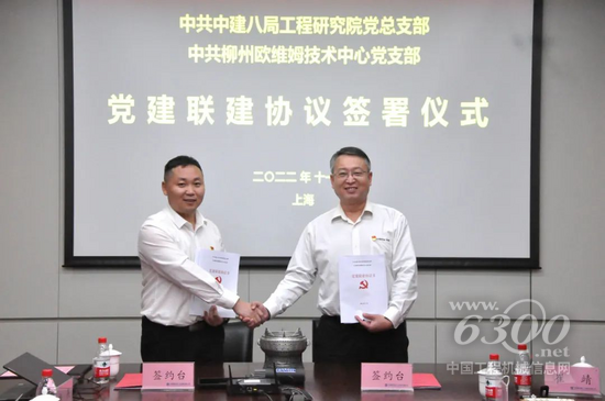 11月19日,中建八局与柳工欧维姆公司党建联建交流会暨战略合作签约仪式在中建八局总部举行。柳工欧维姆公司董事、副总经理陈昱鹏、中建八局总工程师亓立刚进行深入交流会谈,并见证双方签约。