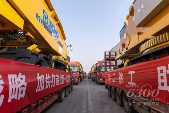 1月7日上午,在徐工高端智能履带起重机生产基地,总价值超亿元的数十台徐工履带起重机整齐列队,批量发车海外,充分彰显了中国工程机械龙头企业旺盛的发展后劲。