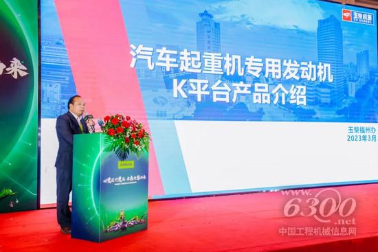 ▲玉柴福州办事处市场经理龚飞介绍发动机产品