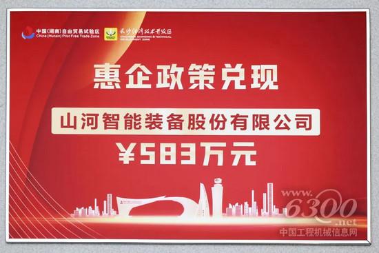 会议还对长沙经开区2022年惠企政策进行了集中兑现,山河智能获583万惠企资金支持。