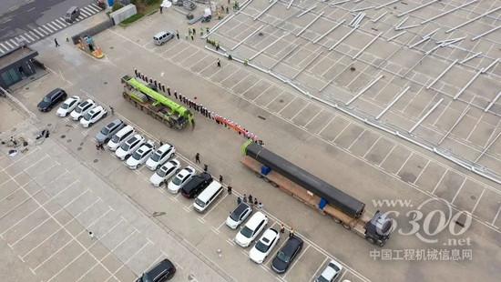 5月2日上午8时38分,十余辆大卡车同时装载中联重科全新一代ZAT24000H全地面起重机开进长沙国际会展中心广场,这是中联此次参展首个进场的超大型参展设备,也是本届CICEE最高、最大、最亮眼的参展设备之一。