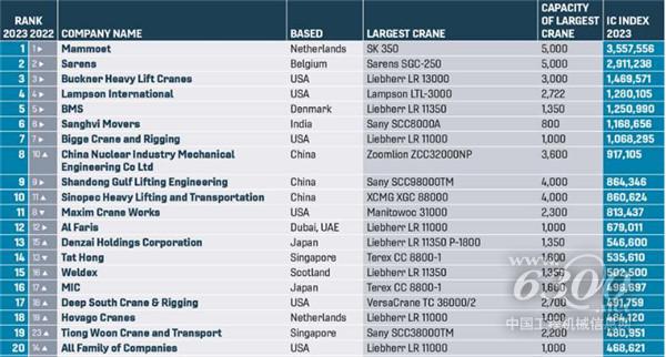 近期,2023年IC100全球起重机运营企业100强排名公布。对于由全球最大的起重机公司组成的IC100指数来说,这是一个好年头。今年的IC100名单基本上可以说是回归了更典型的增长水平,这意味着比2022年的IC100有更大的改进。