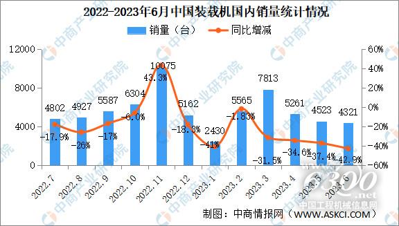 2023年6月销售各类装载机8556台,同比下降25.3%。其中国内市场销量4321台,同比下降42.9%;出口销量4235台,同比增长8.98%。