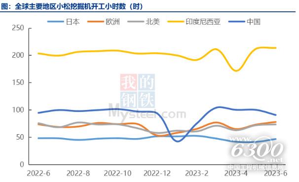 从全球其他地区来看,6月,日本、北美小松挖掘机开工小时数同比负增长,欧洲、印尼小松挖掘机开工小时数同比均呈现正增长。