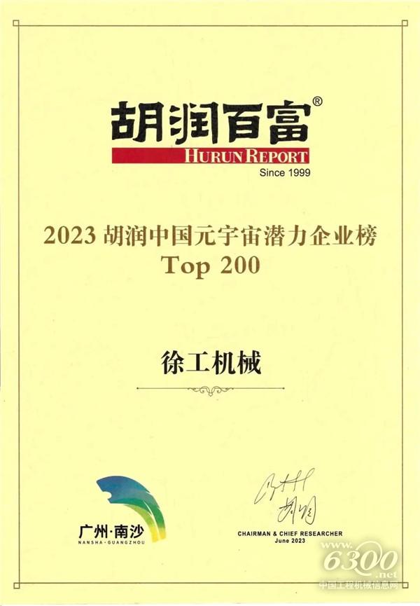 7月20日,《2023胡润中国元宇宙潜力企业榜》正式发布,列出元宇宙领域最具发展潜力的中国企业,徐工机械获评“最具潜力Top200”。
