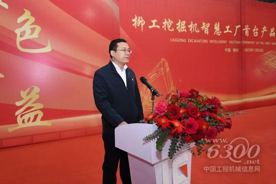 侯国清向参与柳工挖掘机智慧工厂建设的项目团队、设计院、总包等各单位表示感谢。他表示,柳工挖掘机智慧工厂自2022年12月开工建设以来,项目组秉承“六个一”的指导精神,克服了人手不足、雨季施工等困难,按时实现了首台产品下线的阶段性目标。
