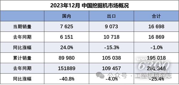据中国工程机械工业协会1月9日披露的统计数据,2023年1月至12月,我国挖掘机主要制造企业共销售挖掘机19.5万台,同比下降25.4%。