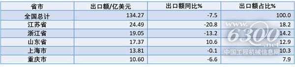 工程机械出口哪省强?2023年我国工程机械产品出口重点省市一览