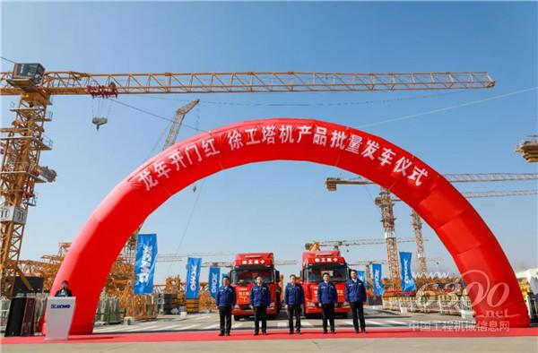 大年初八,龙年开门红,徐工塔机产品批量发车仪式在徐州智能制造基地举行。