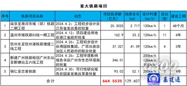 3.2024 年4月份,重大铁路、公路工程获批总投资超1900亿元;