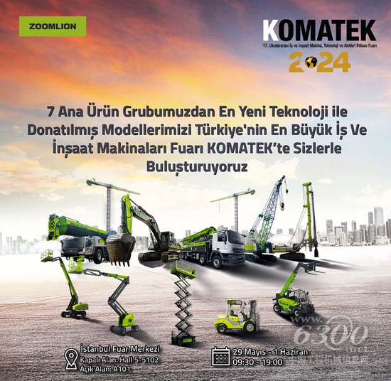 5月29—6月1日,伊斯坦布尔展览中心,室内5-5102、室外A101展位,中联重科期待您的莅临!