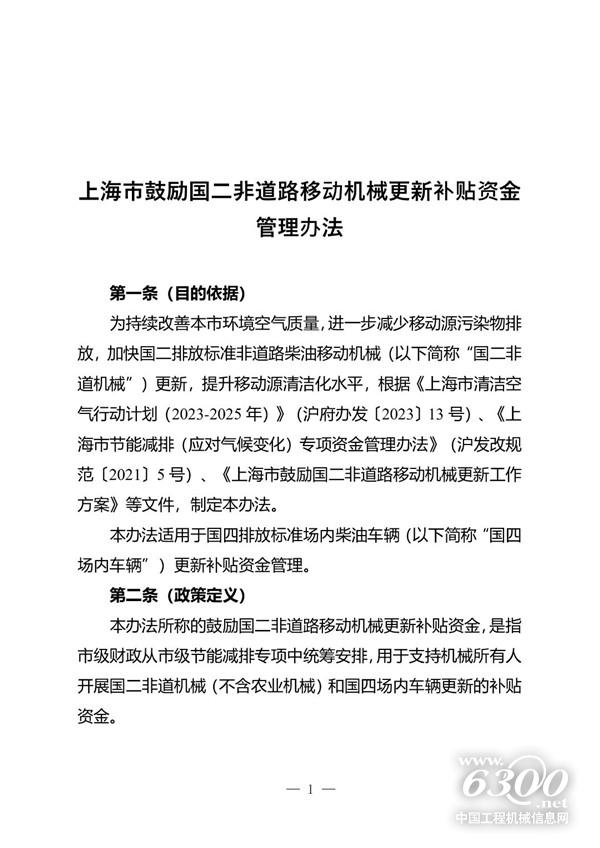 为持续改善环境空气质量,进一步减少移动源污染物排放,加快国二排放标准非道路柴油移动机械(以下简称“国二非道机械”)更新,提升移动源清洁化水平,4月28日,上海市率先发布了关于公开征求《上海市鼓励国二非道路移动机械更新补贴资金管理办法》(征求意见稿)意见的公告,明确了上海地区国二非道路移动机械更新补贴的具体管理办法,同时提到了国四场内车辆更新补贴的相关条款。