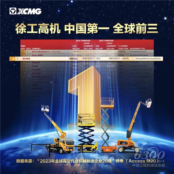 高空作业平台板块,徐工凭借多年技术积淀,通过设备智能化、生产自动化、零部件模块化、管理数字化、精益柔性制造,在产品安全性、环保性和易操作性上均实现多项重大技术创新突破,致力于满足不同的高空作业需求,始终引领行业走在产业发展的前沿。徐工高空作业平台全系产品完成最严苛的欧洲CE认证、北美ANSI认证和澳洲AS/NZS1418认证,简便高效、安全可靠,性能卓越,可全方位满足全球用户差异化需求,产品覆盖全球60多个国家和地区。在日前发布的“2023年全球高空作业机械制造企业20强”榜单(Access M20)中,徐工蝉联中国第一、全球前三。徐工高空作业机械板块逆势增长,蝉联高位,既彰显了“中国制造”全球化发展的坚定步伐,也为行业高质量发展注入源源动力。