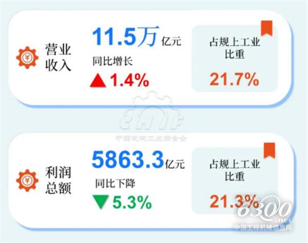 2024年1-5月,机械工业累计实现营业收入11.5万亿元,同比增长1.4%;实现利润总额5863.3亿元,同比下降5.3%。