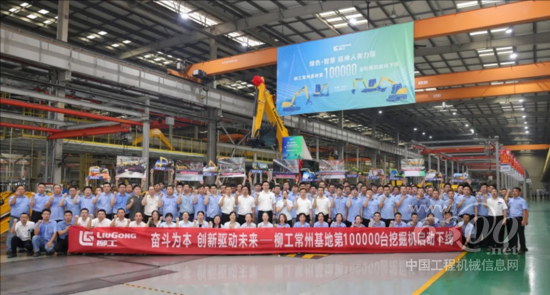 7月15日,柳工东部研发制造基地第10万台挖掘机下线。
