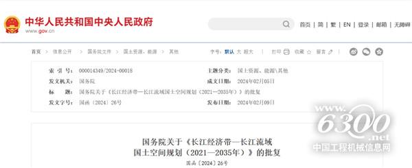 2024年2月9日,《长江经济带—长江流域国土空间规划(2021—2035年)》经国务院批复同意。