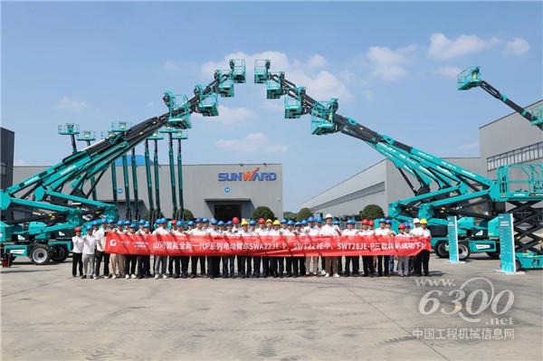 近日,山河智能成功下线三款自主研发的P系列电动臂式高空作业平台,包含一款电动曲臂SWA22JE-P和两款电动直臂SWT22JE-P、SWT28JE-P,三款产品是基于全新一代电动臂车系列化规划和P系列技术平台,继SWA18JE-P成功上市之后,集中同步推出的新品机型。山河智能董事长付向东,副总经理张大庆、朱建新,公司高管兼总经理助理李昌建,高空机械事业部副总经理黄光俊出席下线仪式。