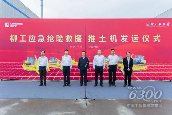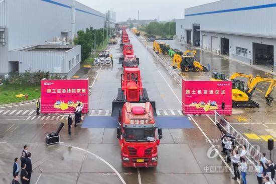 “我宣布,柳工应急抢险救援推土机发车”!随着潘恒亮副总裁宣布发车口令,柳工推土机缓缓驶出。