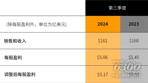卡特彼勒2024年第三季度财报:营收161亿美元,同比下降4%。