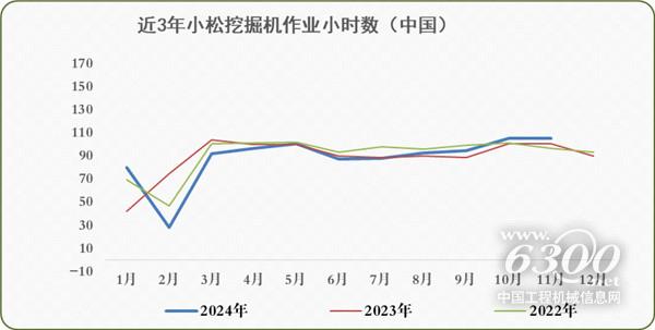 2024年11月,中国地区小松挖掘机开工小时数为105.4小时,同比增长4.4%。