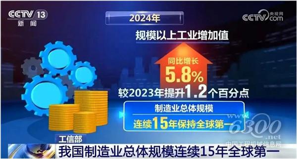 1月21日,国新办举行“中国经济高质量发展成效”系列新闻发布会。会上披露,2024年规模以上工业增加值同比增长5.8%,全部工业增加值完成40.5万亿元,制造业总体规模连续15年保持全球第一。