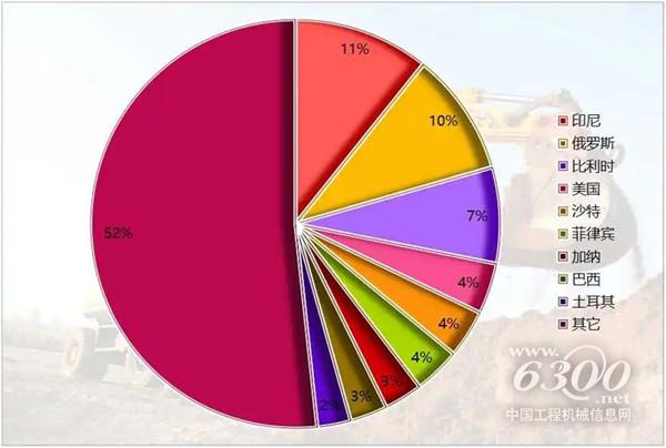 2024年,我国挖掘机出口额达到82.2亿美元,同比2023年的83亿美元下降1%。印度尼西亚、俄罗斯、比利时为出口目的国前三名,占比接近三成。