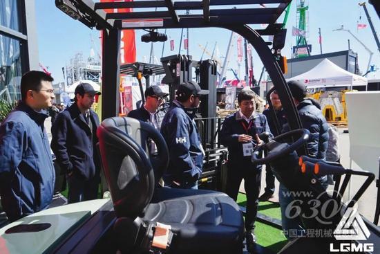 临工重机展出了最新一代伸缩臂叉装车,首款电动机型H625E亮相现场,吸引全球客户关注。