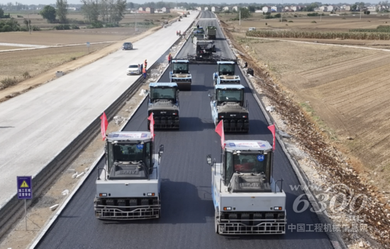 自2024年项目启动以来,三一无人机群已在徐淮阜高速持续奋战200余天,总里程超200km,由SAP130C-10型摊铺机、STR130C-10型双钢轮压路机、SPR300C系列胶轮压路机组成的“1摊3钢4胶—智能建造设备群”备受瞩目。这套依托机群同调度、融合感知定位、高精度路径跟踪、群控安全等技术的机群系统,构建了全新作业模式。